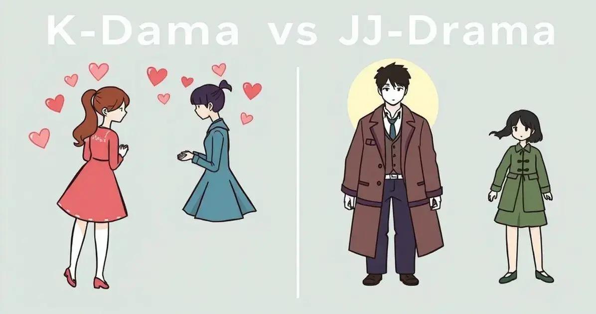 K-dramas geralmente focam em amor e dramas familiares, enquanto J-dramas frequentemente lidam com temas do cotidiano e questões sociais.